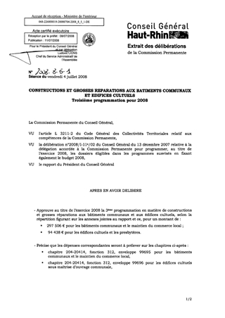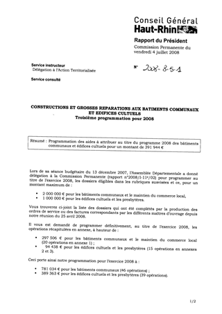 Programmation des aides à attribuer au titre du programme 2008 des bâtiments communaux et édifices cultuels pour un montant de 391 944 €