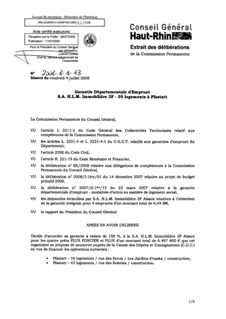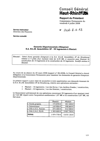 Garantie départementale d'emprunt SA HLM Immobilière 3F 59 Logements à Pfastatt