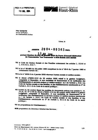 Portant fixation du prix de journée 2004 du Foyer d'Accueil Médicalisé de l'Association "Les Tournesols" à SAINTE MARIE AUX MINES Resumé Pièces jointes ARRETE Assemblée : Non défini Date : 13/07/2004 Rapporteur : Non défini Collectivité : Conseil départemental du Haut-Rhin Direction : Non défini Service : Service de la Tarification des Etablissements Domaine : Prix de Journée Commission :