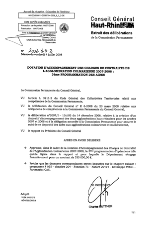 Dotation d'accompagnement des charges de centralité de l'agglomération colmarienne 2007-2008 : 3e programmation des aides