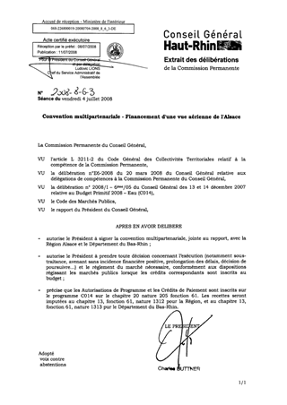 Dans le cadre du partenariat CIGAL, le Département du Haut-Rhin assure la maîtrise d’ouvrage pour l’acquisition d’une prise de vue aérienne de l’Alsace à une résolution de 50 cm. Il vous est proposé de signer la convention ci-jointe avec le Département du Bas-Rhin et la Région Alsace afin de définir les modalités de participation des trois collectivités territoriales.