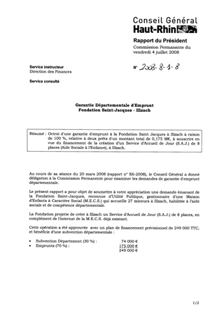 Garantie départementale d'emprunt Fondation St Jacques Illzach