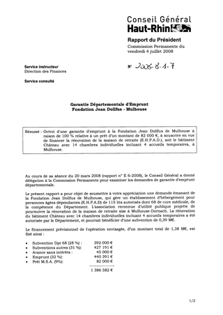 Garantie départementale d'emprunt Fondation Jean DOLLFUS - Mulhouse