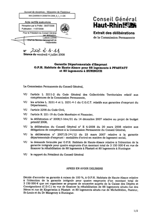 Garantie départementale d'emprunt OPH Habitats de Haute Alsace pour 88 logements à Pfastatt et 80 logements à Huningue