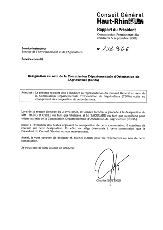 Le présent rapport vise à modifier la représentation du Conseil Général au sein de la Commission Départementale d'Orientation de l’Agriculture (CDOA) suite au changement de composition de cette dernière.