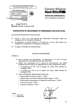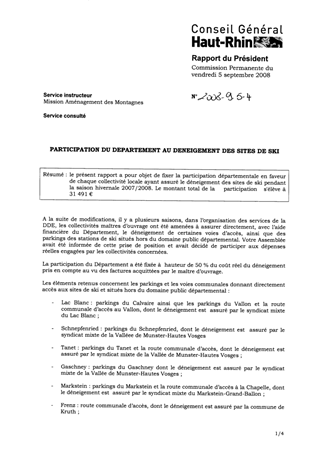 le présent rapport a pour objet de fixer la participation départementale en faveur de chaque collectivité locale ayant assuré le déneigement des sites de ski pendant la saison hivernale 2007/2008. Le montant total de la participation s'élève à 31 491 €