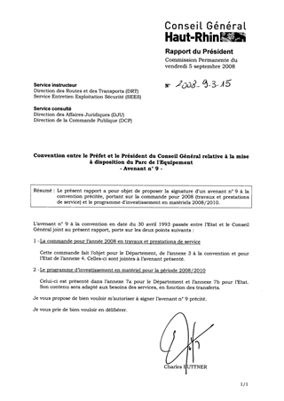 Le présent rapport a pour objet de proposer la signature d'un avenant n° 9 à la convention précitée, portant sur la commande pour 2008 (travaux et prestations de service) et le programme d'investissement en matériels 2008/2010.