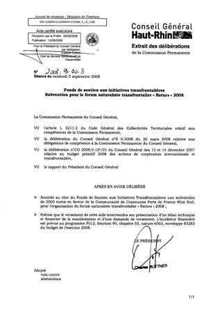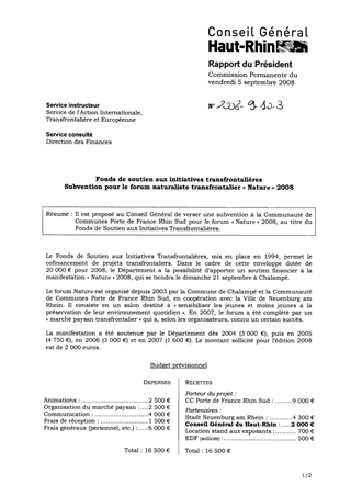 Il est proposé au Conseil Général de verser une subvention à la Communauté de Communes Porte de France Rhin Sud pour le forum « Nature » 2008, au titre du Fonds de Soutien aux Initiatives Transfrontalières.