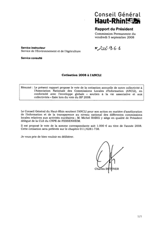Le présent rapport propose le vote de la cotisation annuelle de notre collectivité à l’Association Nationale des Commissions Locales d’Information (ANCLI), en conformité avec l’enveloppe globale « soutien à la vie associative et aux collectivités » fixée lors du vote du BP 2008.