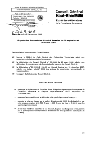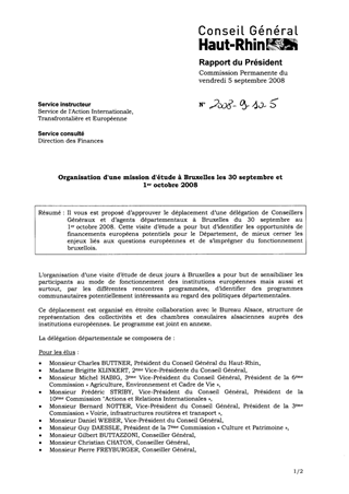 ORGANISATION D’UNE MISSION D’ETUDE A BRUXELLES LES 30 SEPTEMBRE ET 1ER OCTOBRE 2008
