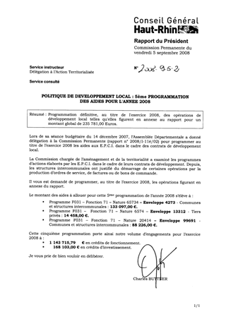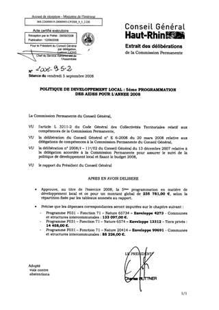 Programmation définitive, au titre de l'exercice 2008, des opérations de développement local telles qu'elles figurent en annexe au rapport pour un montant global de 235 781,00 Euros.