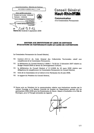 Informations relatives aux évaluations menées par le cabinet Dumeige et la Mission Contrôle de Gestion portant sur les partenariats 2006/2008 avec : . les Dominicains de Haute-Alsace à Guebwiller . la Ville de Huningue, pour le Triangle