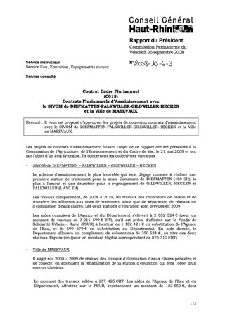 CONTRAT CADRE PLURIANNUEL CONTRATS PLURIANNUELS D’ASSAINISSEMENT AVEC LE SIVOM DE DIEFMATTEN-FALKWILLER-GILDWILLER-HECKEN ET LA VILLE DE MASEVAUX