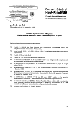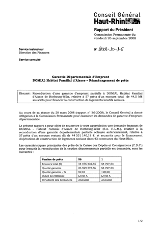 GARANTIE DEPARTEMENTALE D’EMPRUNT DOMIAL HABITAT FAMILIAL D’ALSACE – REAMENAGEMENT DE PRETS