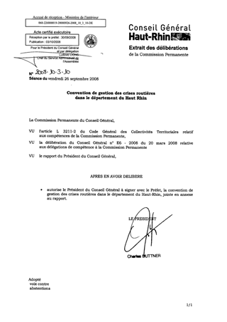 ROUTES DEPARTEMENTALES - CONVENTION DE GESTION DES CRISES ROUTIERES DANS LE DEPARTEMENT DU HAUT RHIN