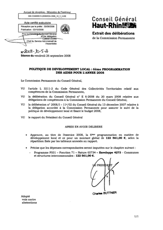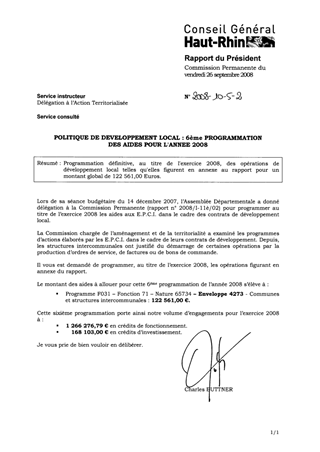 Programmation définitive, au titre de l'exercice 2008, des opérations de développement local telles qu'elles figurent en annexe au rapport pour un montant global de 122 561,00 Euros.