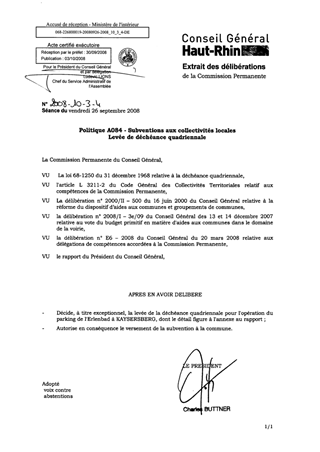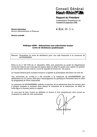 Proposition de levée de déchéance pour une aide financière à la commune de KAYSERSBERG