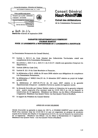 GARANTIE DEPARTEMENTALE D'EMPRUNT COLMAR HABITAT POUR 13 LOGEMENTS A WINTZENHEIM ET 3 LOGEMENTS A ROUFFACH