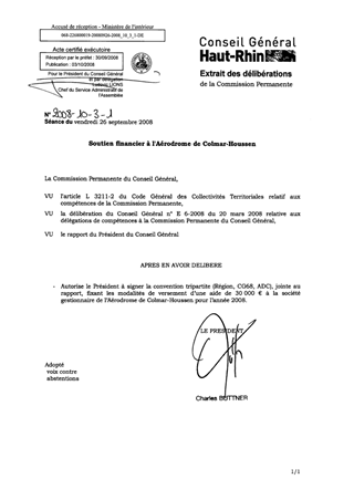 SOUTIEN FINANCIER A L'AERODROME DE COLMAR-HOUSSEN