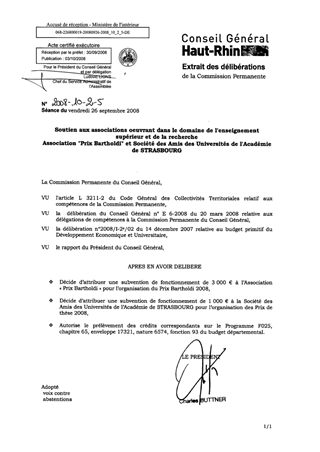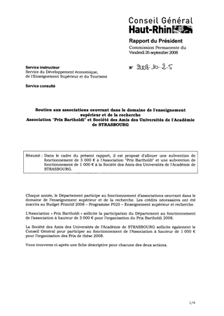 SOUTIEN AUX ASSOCIATIONS OEUVRANT DANS LE DOMAINE DE L'ENSEIGNEMENT SUPERIEUR ET DE LA RECHERCHE ASSOCIATION "PRIX BARTHOLDI" ET SOCIETE DES AMIS DES UNIVERSITES DE L'ACADEMIE DE STRASBOURG