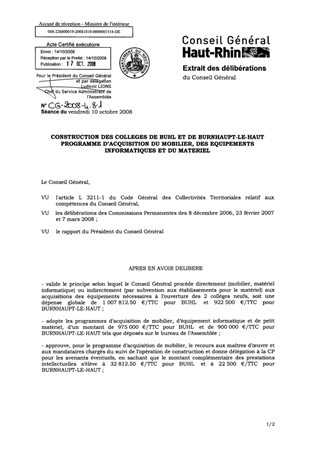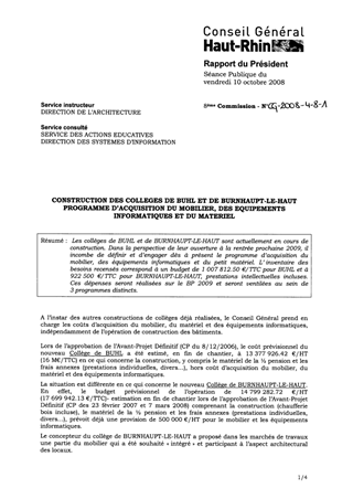 CONSTRUCTION DES COLLEGES DE BUHL ET BURNHAUPT-LE-HAUT PROGRAMME D’ACQUISITION DU MOBILIER, DES EQUIPEMENTS INFORMATIQUES ET DU MATERIEL