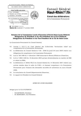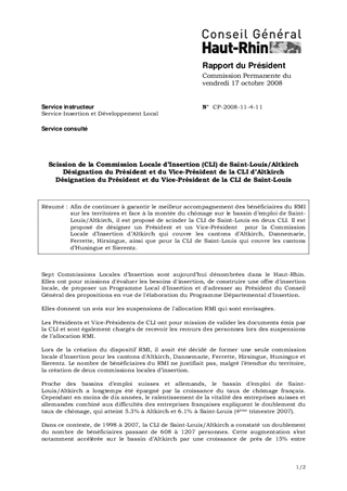 SCISSION DE LA COMMISSION LOCALE D'INSERTION (CLI) DE ST LOUIS/ALTKIRCH