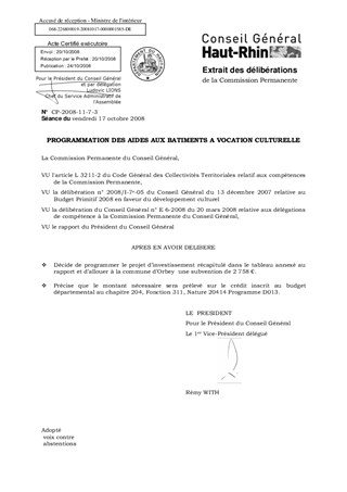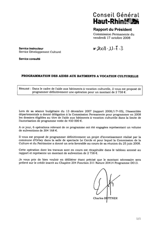 Dans le cadre de l'aide aux bâtiments à vocation culturelle, il vous est proposé de programmer définitivement une opération pour un montant de 2 758 €.