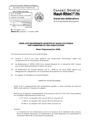 AIDES AUX EQUIPEMENTS SPORTIFS ET SOCIO-CULTURELS DES COMMUNES ET DES ASSOCIATIONS - 6EME PROGRAMMATION 2008 -