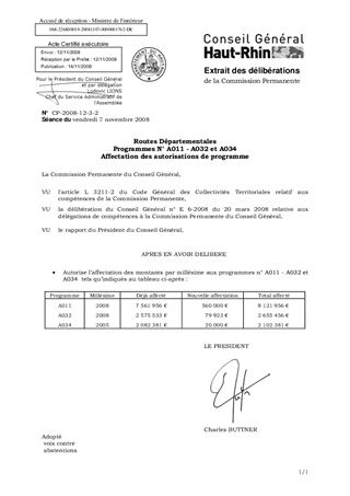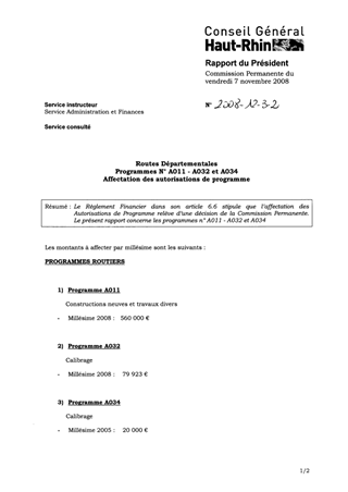 Le Règlement Financier dans son article 6.6 stipule que l’affectation des Autorisations de Programme relève d’une décision de la Commission Permanente. Le présent rapport concerne les programmes n° A011 - A032 et A034