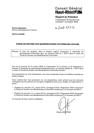 Il vous est proposé, dans le présent rapport d'examiner 2 demandes de participations financières pour un montant total de 1 200 € dans le cadre du Fonds de Soutien aux Manifestations Culturelles.