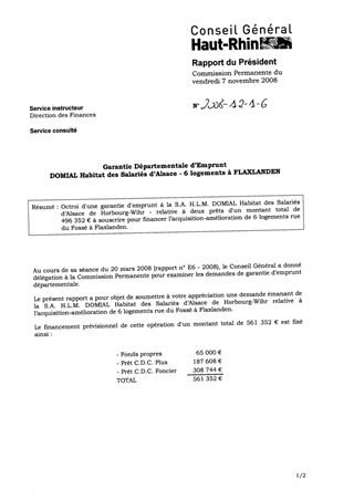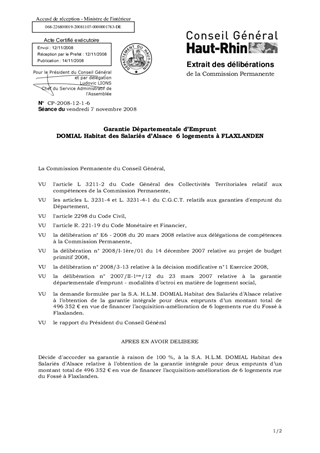 GARANTIE DEPARTEMENTALE D’EMPRUNT DOMIAL HABITAT DES SALARIES D’ALSACE - 6 LOGEMENTS A FLAXLANDEN