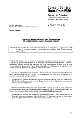 AIDES DEPARTEMENTALES A LA REALISATION DE LOGEMENTS LOCATIFS SOCIAUX PRIVES