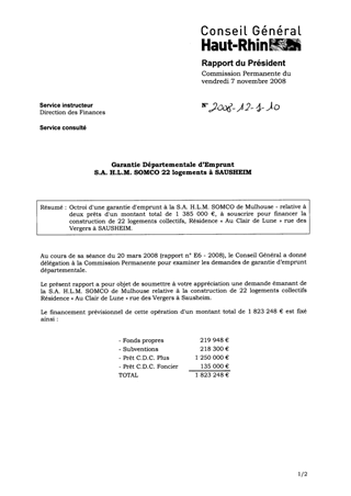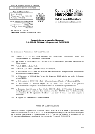 GARANTIE DEPARTEMENTALE D’EMPRUNT S.A. H.L.M. SOMCO 22 LOGEMENTS A SAUSHEIM