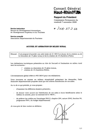 Il est proposé d'accorder une aide totale de 61 480 € en faveur de la création ou de la rénovation de 15 gîtes ruraux et de la création de 10 chambres d'hôtes.