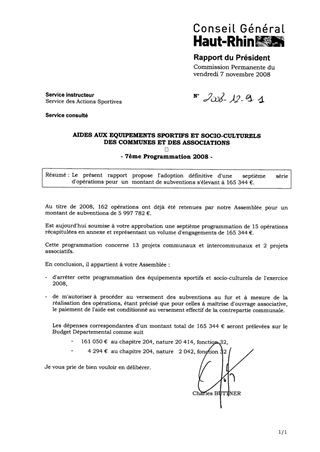 AIDES AUX EQUIPEMENTS SPORTIFS ET SOCIO-CULTURELS DES COMMUNES ET DES ASSOCIATIONS - 7ème Programmation 2008 -