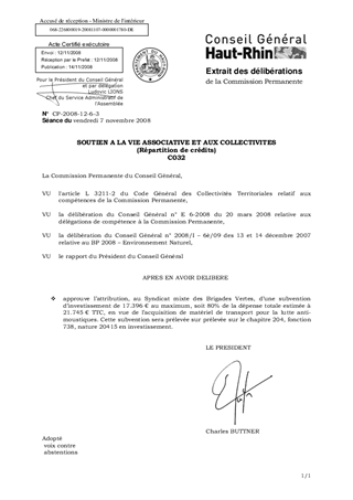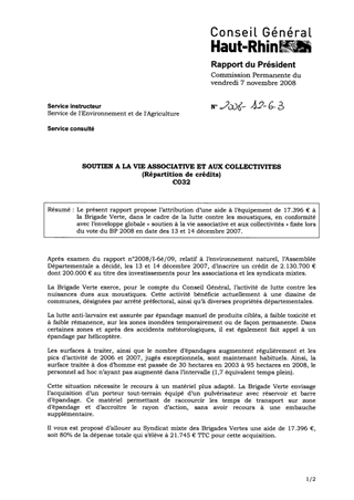 Le présent rapport propose l’attribution d’une aide à l’équipement de 17.396 € à la Brigade Verte, dans le cadre de la lutte contre les moustiques, en conformité avec l’enveloppe globale « soutien à la vie associative et aux collectivités » fixée lors du vote du BP 2008 en date des 13 et 14 décembre 2007.