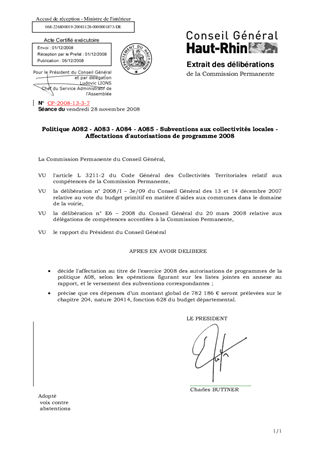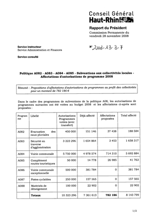 Politique A082 - A083 - A084 - A085 - Subventions aux collectivités locales - Affectations d'autorisations de programme 2008