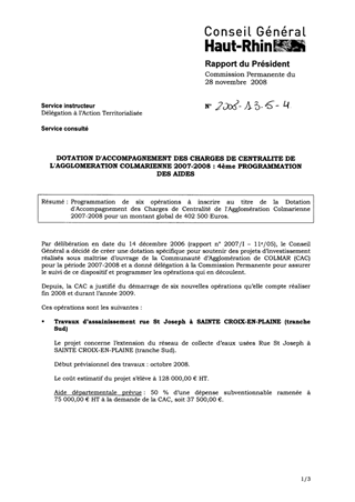 DOTATION D'ACCOMPAGNEMENT DES CHARGES DE CENTRALITE DE L'AGGLOMERATION COLMARIENNE 2007-2008 : 4ème PROGRAMMATION DES AIDES