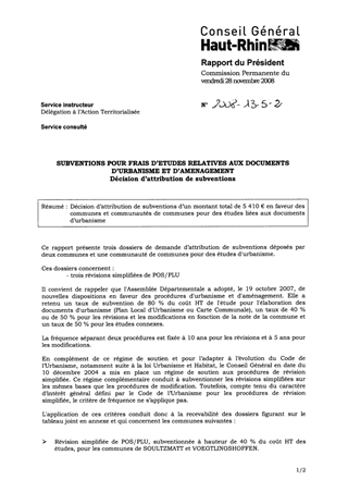 SUBVENTIONS POUR FRAIS D’ETUDES RELATIVES AUX DOCUMENTS D’URBANISME ET D’AMENAGEMENTDécision d’attribution de subventions