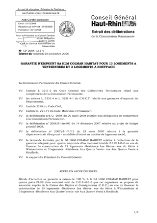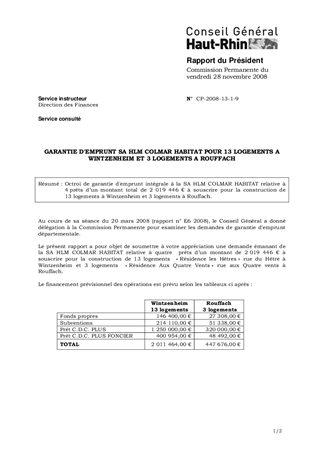 GARANTIE D'EMPRUNT SA HLM COLMAR HABITAT POUR 13 LOGEMENTS A WINTZENHEIM ET 3 LOGEMENTS A ROUFFACH
