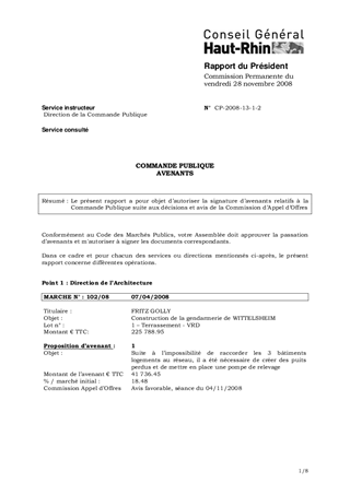 Le présent rapport a pour objet d’autoriser la signature d’avenants relatifs à la Commande Publique suite aux décisions et avis de la Commission d’Appel d’Offres