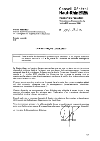 Dans le cadre du dispositif de guichet unique "artisanat", il est proposé d'attibuer un montant toal de 8 121 € en faveur de 2 dossiers de créations d'entreprises artisanales.