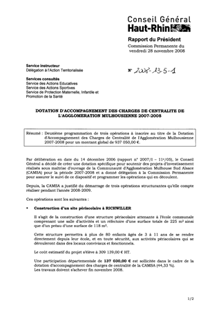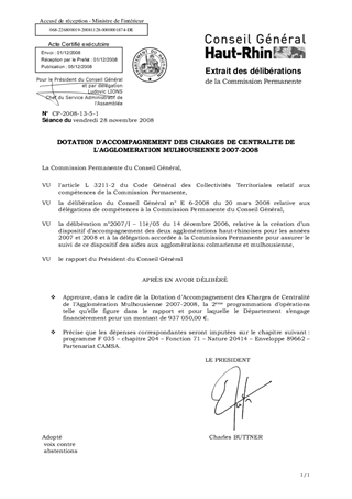 DOTATION D'ACCOMPAGNEMENT DES CHARGES DE CENTRALITE DE L'AGGLOMERATION MULHOUSIENNE 2007-2008