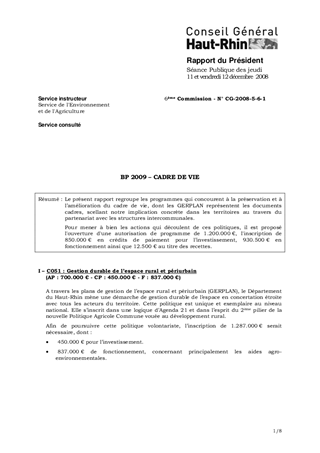 Le présent rapport regroupe les programmes qui concourent à la préservation et à l’amélioration du cadre de vie, dont les GERPLAN représentent les documents cadres, scellant notre implication concrète dans les territoires au travers du partenariat avec les structures intercommunales. Pour mener à bien les actions qui découlent de ces politiques, il est proposé l'ouverture d'une autorisation de programme de 1.200.000 €, l'inscription de 950.000 € en crédits de paiement pour l’investissement, 930.500 € en fonctionnement ainsi que 12.500 € au titre des recettes.