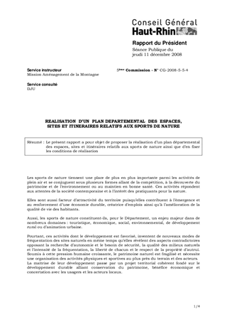 Le présent rapport a pour objet de proposer la réalisation d’un plan départemental des espaces, sites et itinéraires relatifs aux sports de nature ainsi que d’en fixer les conditions de réalisation