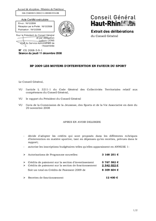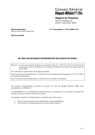 BP 2009 LES MOYENS D'INTERVENTION EN FAVEUR DU SPORT