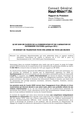 LE BP 2009 EN FAVEUR DE LA CONSERVATION ET DE L’ANIMATION DU PATRIMOINE CULTUREL (politique D01) : UN BUDGET DE TRANSITION POUR UNE ANNEE DE TOUS LES ENJEUX