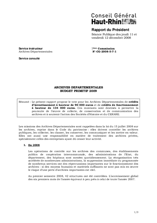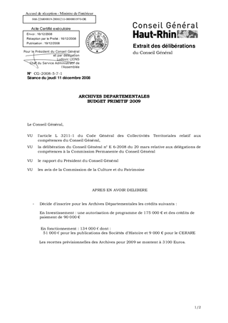 ARCHIVES DEPARTEMENTALES BUDGET PRIMITIF 2009