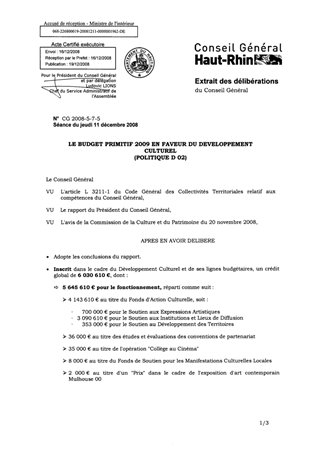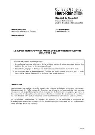 LE BUDGET PRIMITIF 2009 EN FAVEUR DU DEVELOPPEMENT CULTUREL(POLITIQUE D 02)