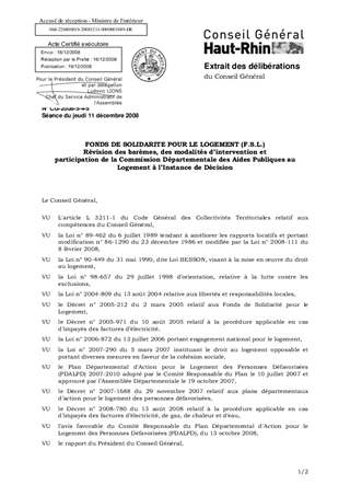 En référence à la loi du 31 mai 1990 visant la mise en œuvre du droit au logement, le F.S.L. du Haut-Rhin est opérationnel depuis le 1er janvier 1992 et a formalisé le cadre de ses interventions financières sur la base de critères validés à ce moment. Il convient de l’adapter à l’évolution du contexte socio-économique, de la précarité qui touche de nouvelles catégories de ménages (personnes âgées, handicapées, …). Une réflexion a été menée afin de réviser les barèmes d’interventions financières du F.S.L., ses modalités d’intervention et le réaménagement de la procédure d’examen des demandes d’aides à l’accès à un logement locatif. Ces nouvelles propositions d’intervention prennent en compte les dispositions de la loi DALO (Droit au Logement Opposable), et du décret du 29 novembre 2007 concernant la prévention des expulsions locatives. Elles ont été présentées au Comité Responsable du Plan Départemental d’Action pour le Logement des Personnes Défavorisées (P.D.A.L.P.D.) le 13 octobre 2008, qui a émis un avis favorable à leur mise en application. Il est proposer d’approuvé la révision des barèmes et des modalités d’intervention du F.S.L. et la nomination d’un membre de la CDAPL à l’Instance de Décision du F.S.L.